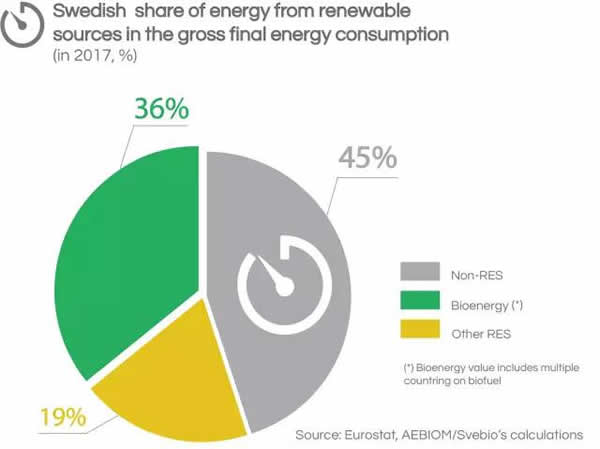 對于瑞典來說,國家生物能源日定于在8月21日,瑞典是歐盟成員國的領(lǐng)先者,因?yàn)樗纳锬茉凑甲罱K能源消耗中的份額36%。自2009年以來,生物能源是瑞典的主要能源,其份額逐年增加。2017年瑞典的可再生能源利用總量將達(dá)到55%左右,而整個(gè)歐盟則為18%。其他生物能源份額較高的歐盟成員國分別是芬蘭(33%)、拉脫維亞(31%)、愛沙尼亞(27%)、丹麥(25%)、立陶宛(22%)、奧地利和羅馬尼亞(均為20%)。