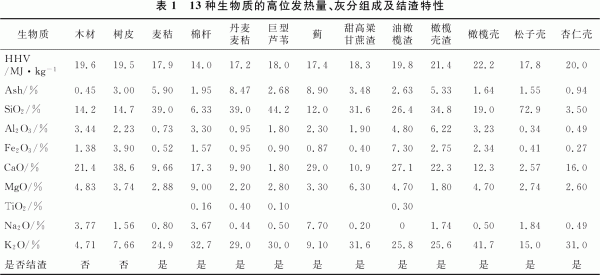 生物質(zhì)燃料在流化床內(nèi)結(jié)渣特性判別指標(biāo)研究 |