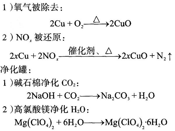 1.1.2混氣罐和還原爐 混氣罐:經過上述燃燒及凈化反應,最終進入混氣罐的氣體為生物質中C燃燒生成的CO2,生物質中H形成的H2O,生物質中N轉化的N2、NOx以及剩余O2。 還原爐:還原爐中裝有銅絲及用于催化還原反應的催化劑。