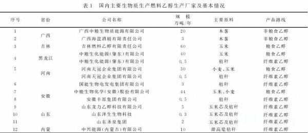 該技術(shù)產(chǎn)品為乙醇,副產(chǎn)品為重組分量約1%。該技術(shù)噸乙醇消耗甲醇0.7噸,合成氣(CO/H2為2:1)1462Nm3。公用介質(zhì)噸乙醇消耗情況為:蒸汽3.2噸,電520kW·h,循環(huán)水400噸,冷凍水56噸,儀表空氣20Nm3,氮?dú)?Nm3。以甲醇成本2500元/噸,合成氣1.2元/Nm3計(jì),噸乙醇物耗成本約4310元。 4燃料乙醇行業(yè)現(xiàn)狀 4.1國(guó)內(nèi)燃料乙醇行業(yè)狀況 4.1.1國(guó)內(nèi)生物質(zhì)制燃料乙醇企業(yè)分布情況 2016年,國(guó)內(nèi)燃料乙醇產(chǎn)量約210萬(wàn)噸,進(jìn)口量55萬(wàn)噸,使用量約265萬(wàn)噸,理論使用量約320萬(wàn)噸(封閉推廣6省按E10標(biāo)準(zhǔn)理論使用量)。生物基燃料乙醇生產(chǎn)企業(yè)主要分布在廣西、黑龍江、吉林、河南、安徽、山東、內(nèi)蒙七省市自治區(qū)。國(guó)內(nèi)生物制燃料乙醇生產(chǎn)企業(yè)共計(jì)12家,規(guī)模已達(dá)218.8萬(wàn)噸/年。具體情況詳見(jiàn)表1。